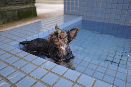 再び温泉街に戻り、ワンコの温泉デビュー。 ペット湯で心地よさそうにする愛犬、こっちは汗だくだ…