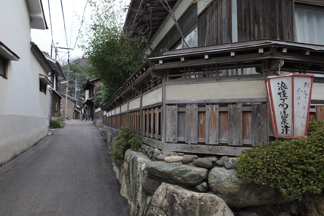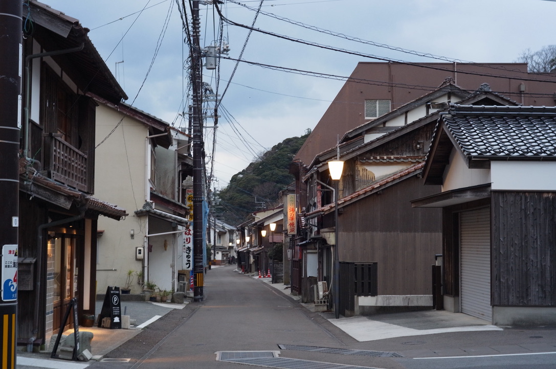 静かな温泉街の冬の朝、目覚めのひとっ風呂。熱い湯で火照った体に、ぴしっと冷たい空気を纏い、夜明け前のひとり散歩。