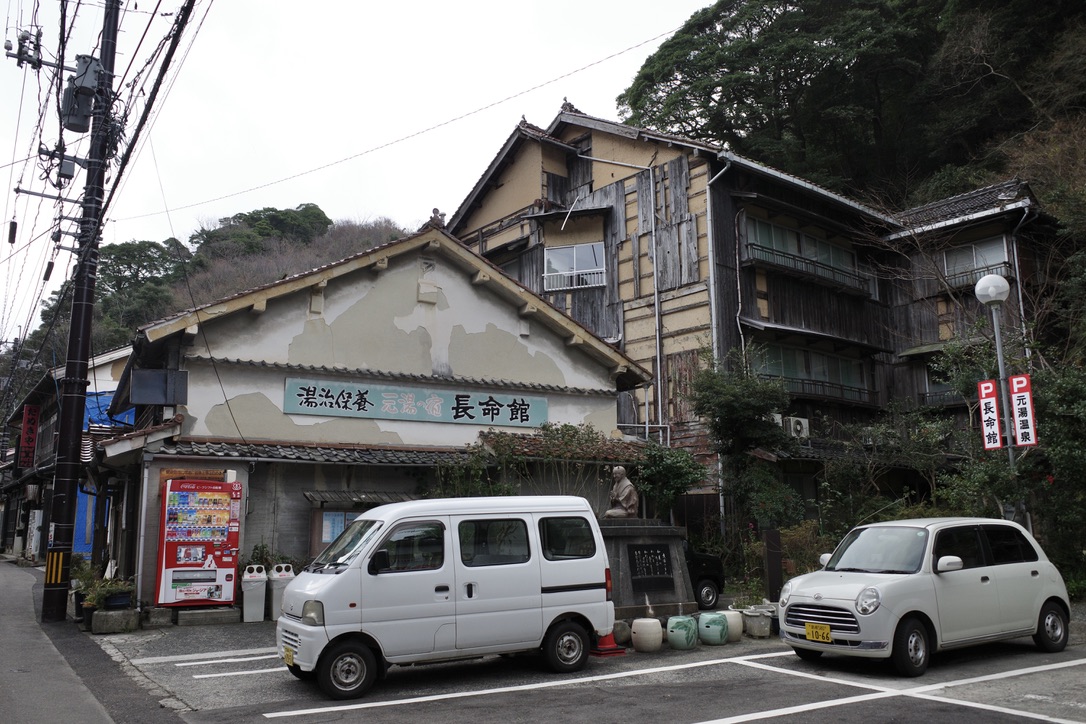 元湯の向かいにある長命館は既に営業していないが、ここは元湯の経営だったようで、明治築の母屋と大正築の木造3階建てから成る。3階建て部分の吹き抜け階段を是非拝みたかった。